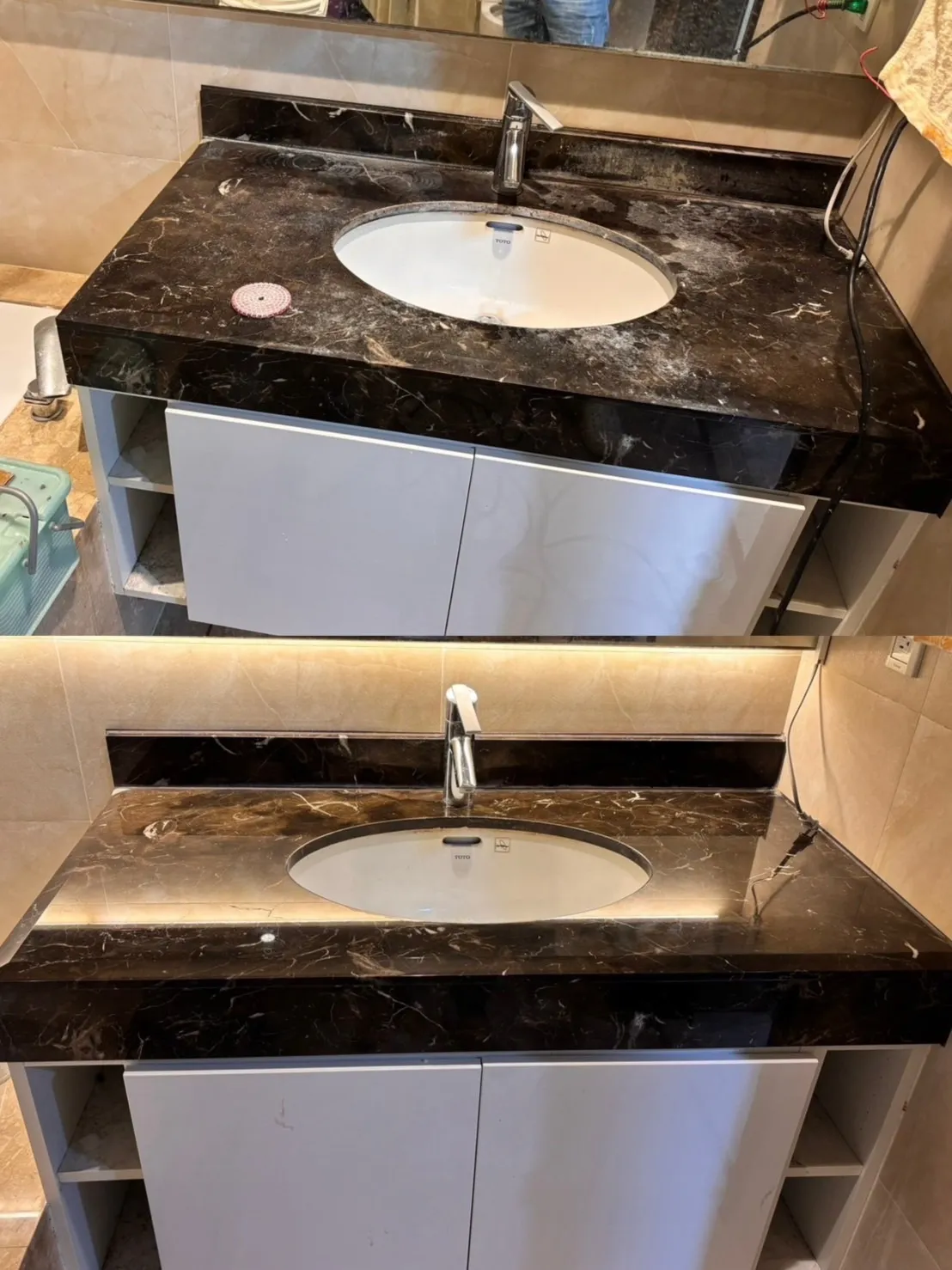 許多人以為只要清潔乾淨就好,但大理石真正的關鍵在於「拋光與晶化」。這不僅能恢復光澤,更能提升硬度與耐磨性,是大理石養護中不可或缺的重要步驟!